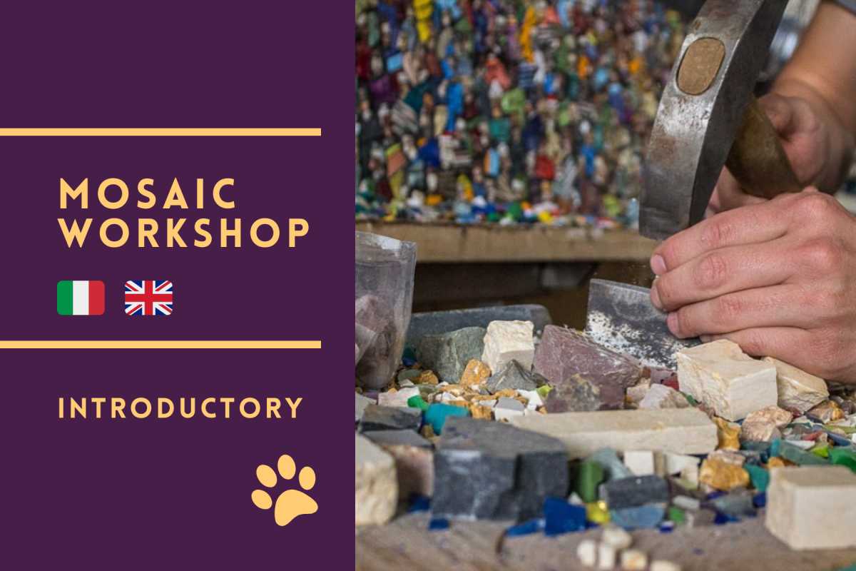 Please note that the workshop is a working artisan space where marble, glass, and smalti are used daily: there may be small fragments, loose tesserae or dust on the floor, and other participants — including children — may be present.